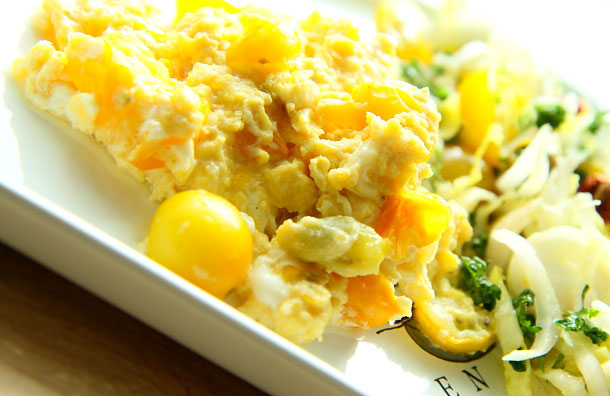 Home » BEZGLUTENOWE » Jajecznica z pomidorkami koktajlowymi (plus sałatka) » Jajecznica i sałatka_02