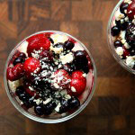 7. W szklankach lub pucharkach ułóż naprzemian warstwy jogurtu i pokruszonej na kawałki bezy. Wierzch deseru udekoruj całymi owocami i bardzo drobno pokruszoną bezą.